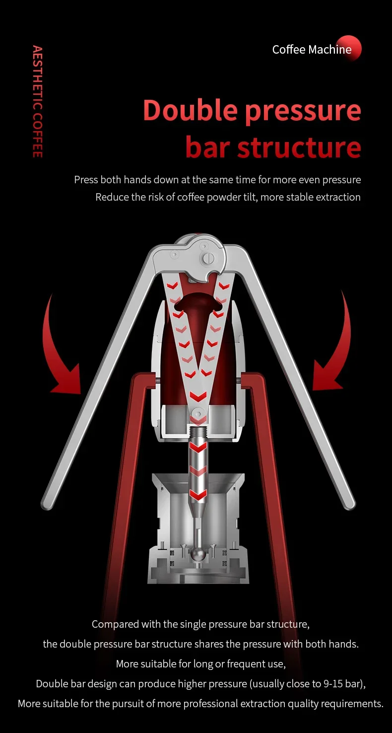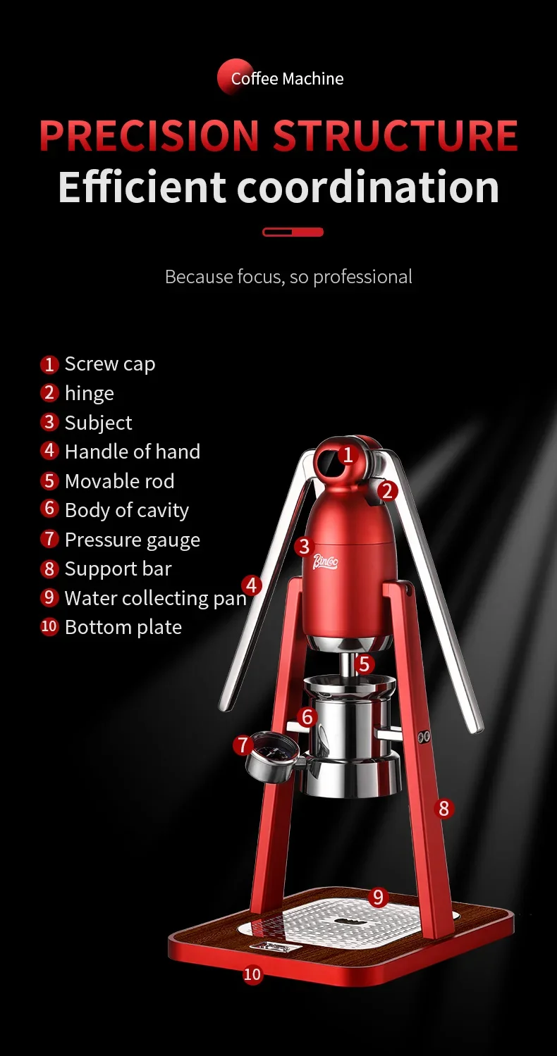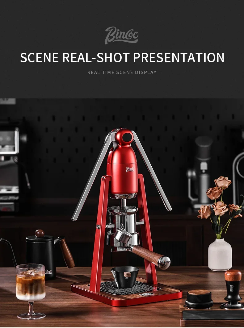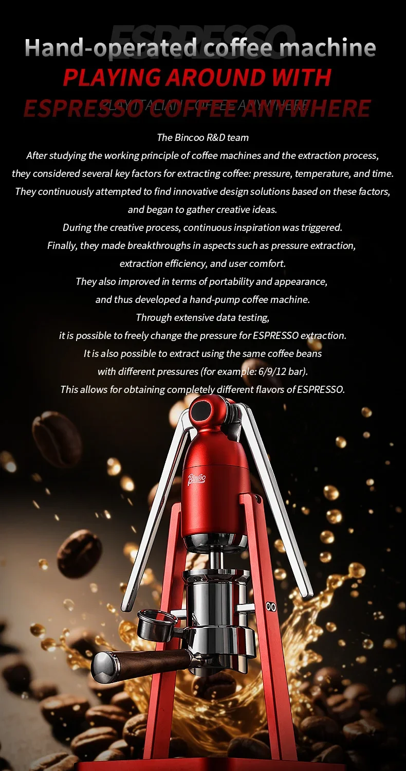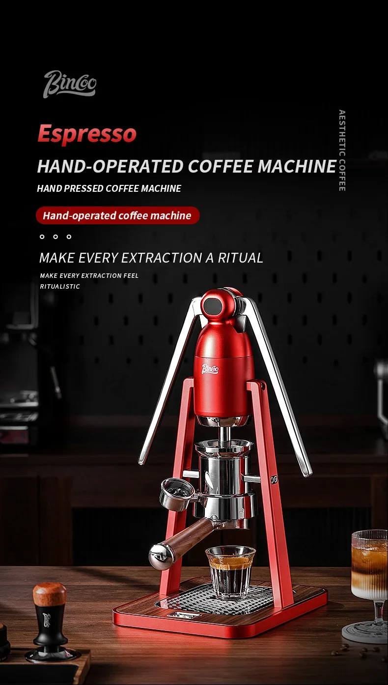 Experience the traditional art of coffee making with the Bincoo Manual Portable Coffee Machine. Its double pull rod system allows for precise control over the extraction process.