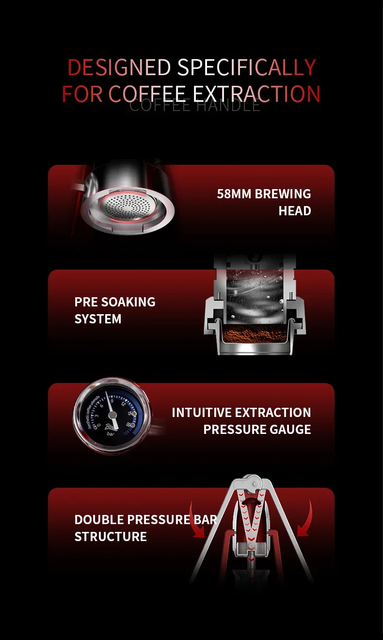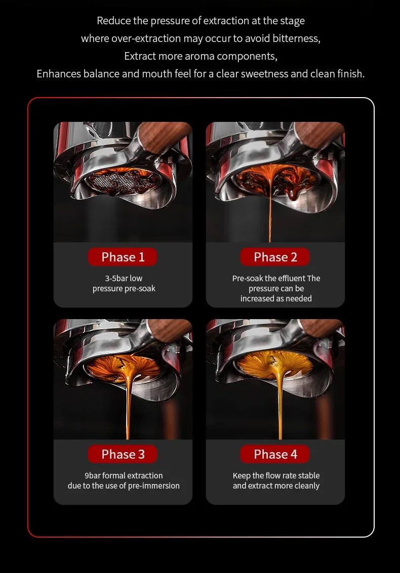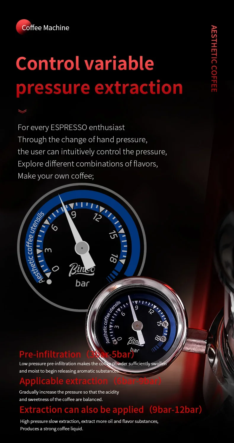 The Bincoo machine employs an Italian concentrator extraction method, delivering a rich and flavorful espresso every time.
