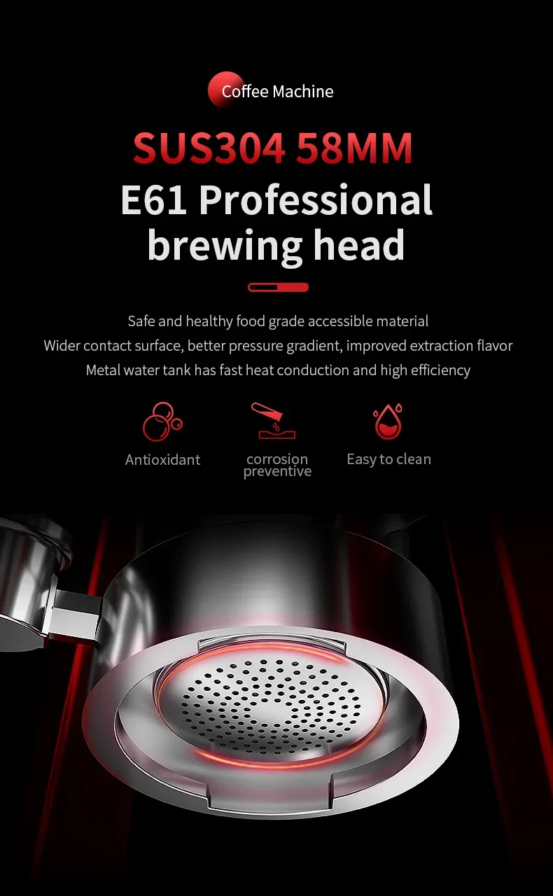 Crafted from high-quality stainless steel, this coffee machine is not only durable but also easy to clean, ensuring longevity and maintenance-free use.